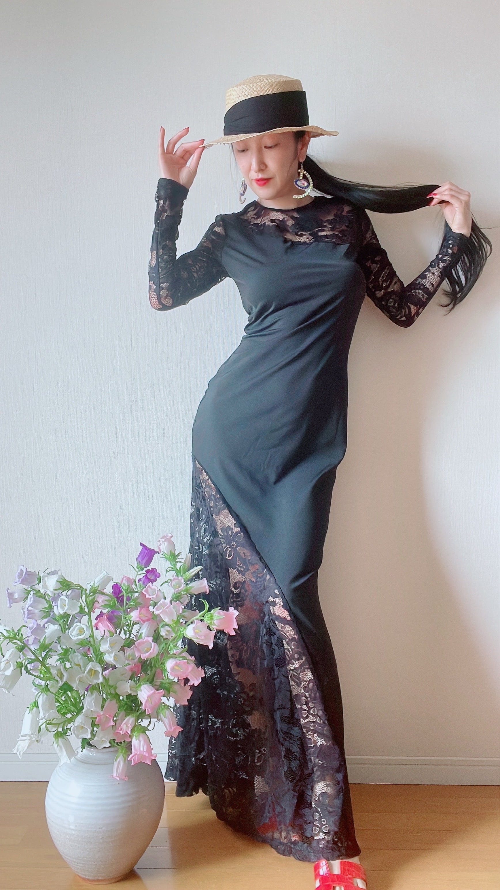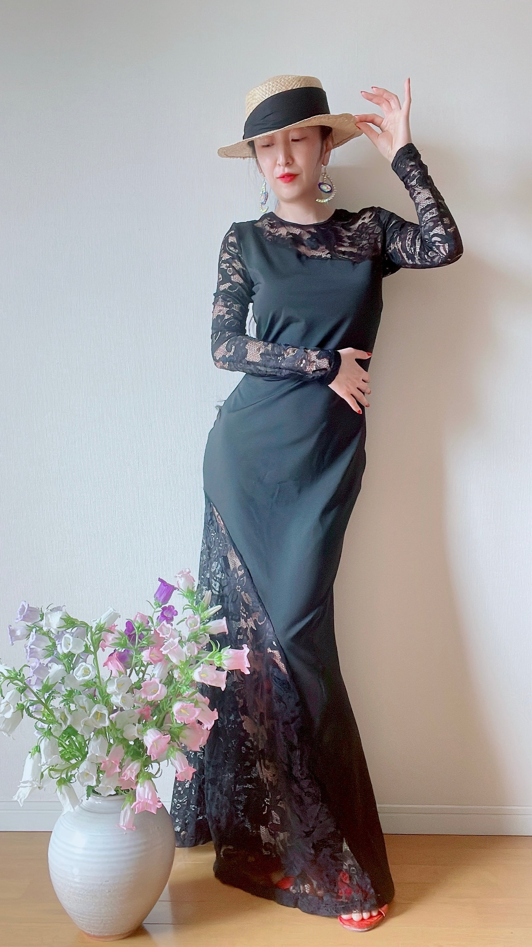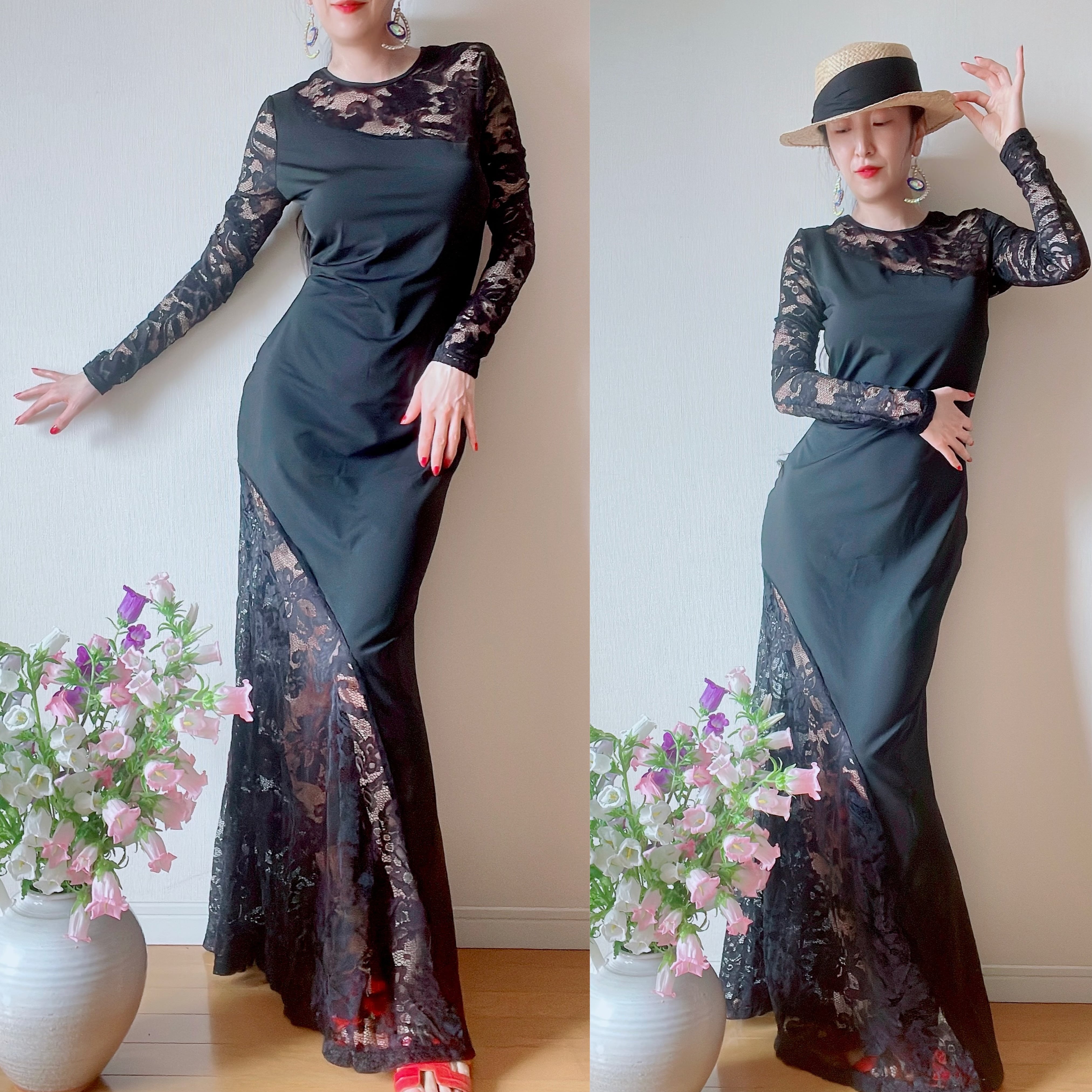 ♡Layali♡踊らない時間も視線を集めて黒とレースのボディコンシャスマキシワンピ