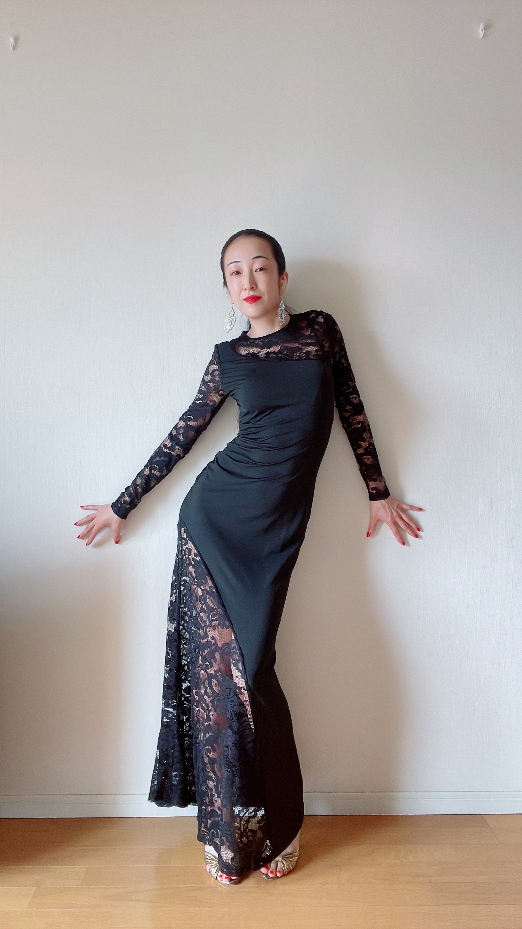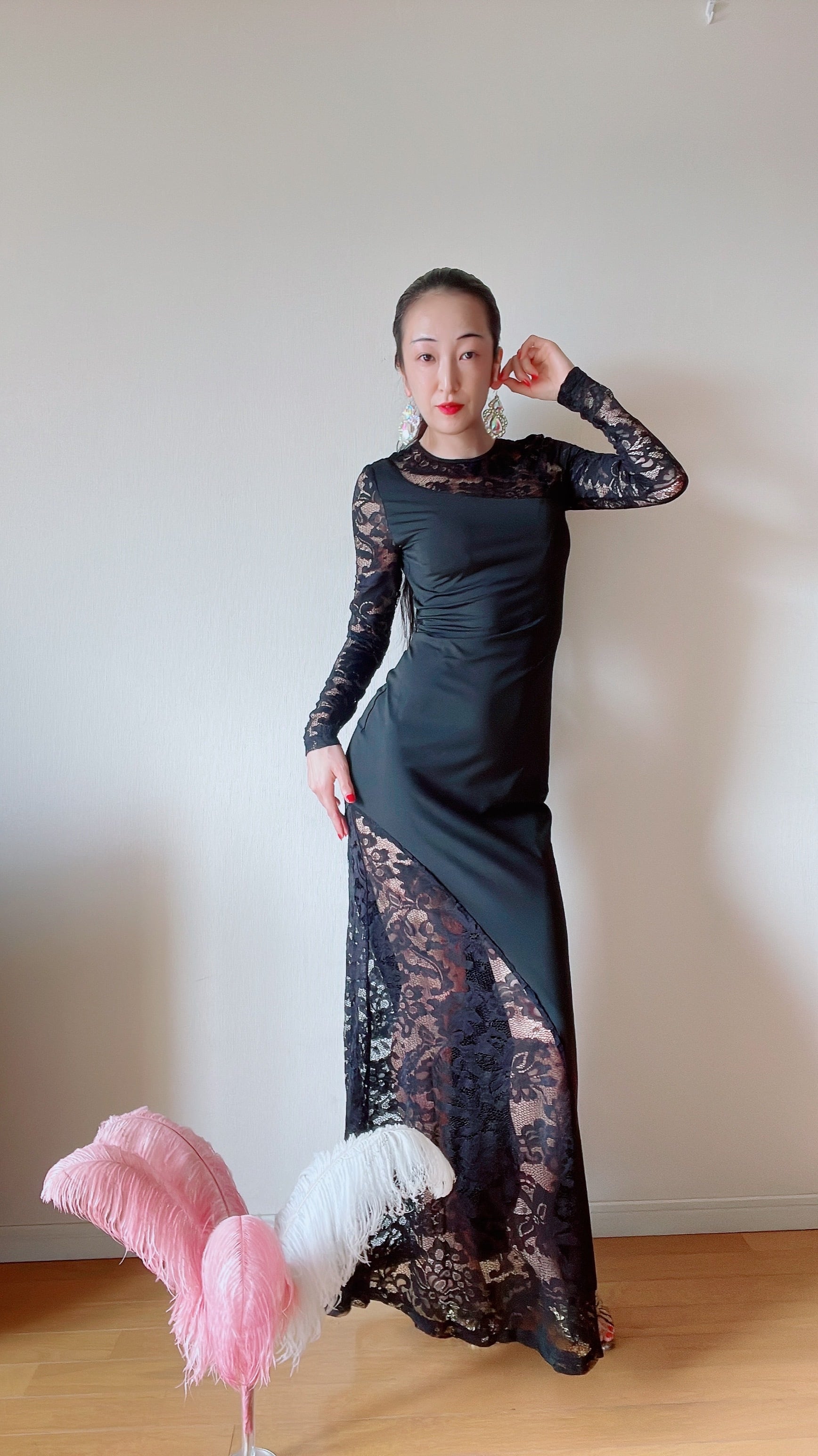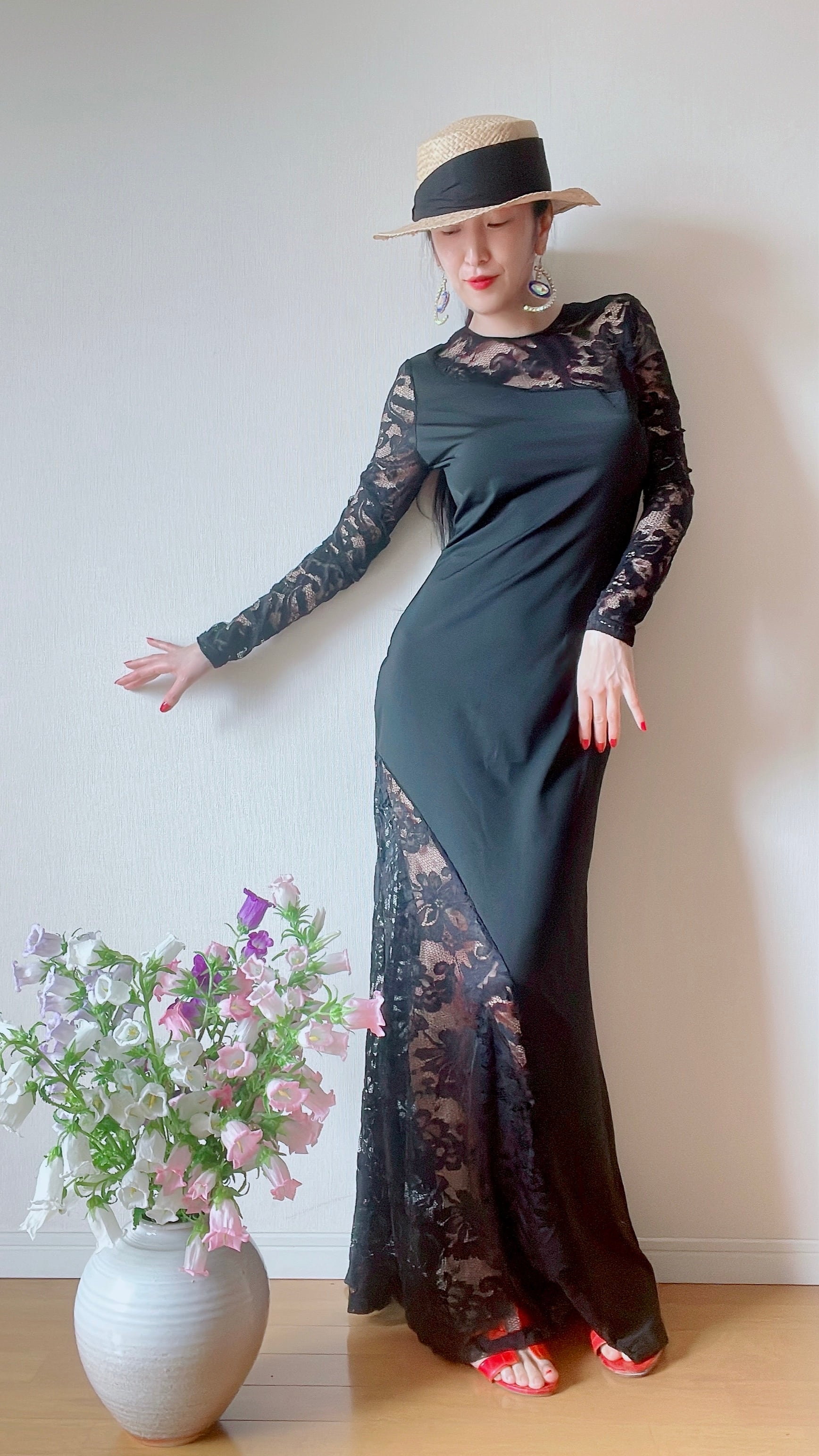 ♡Layali♡踊らない時間も視線を集めて黒とレースのボディコンシャスマキシワンピ