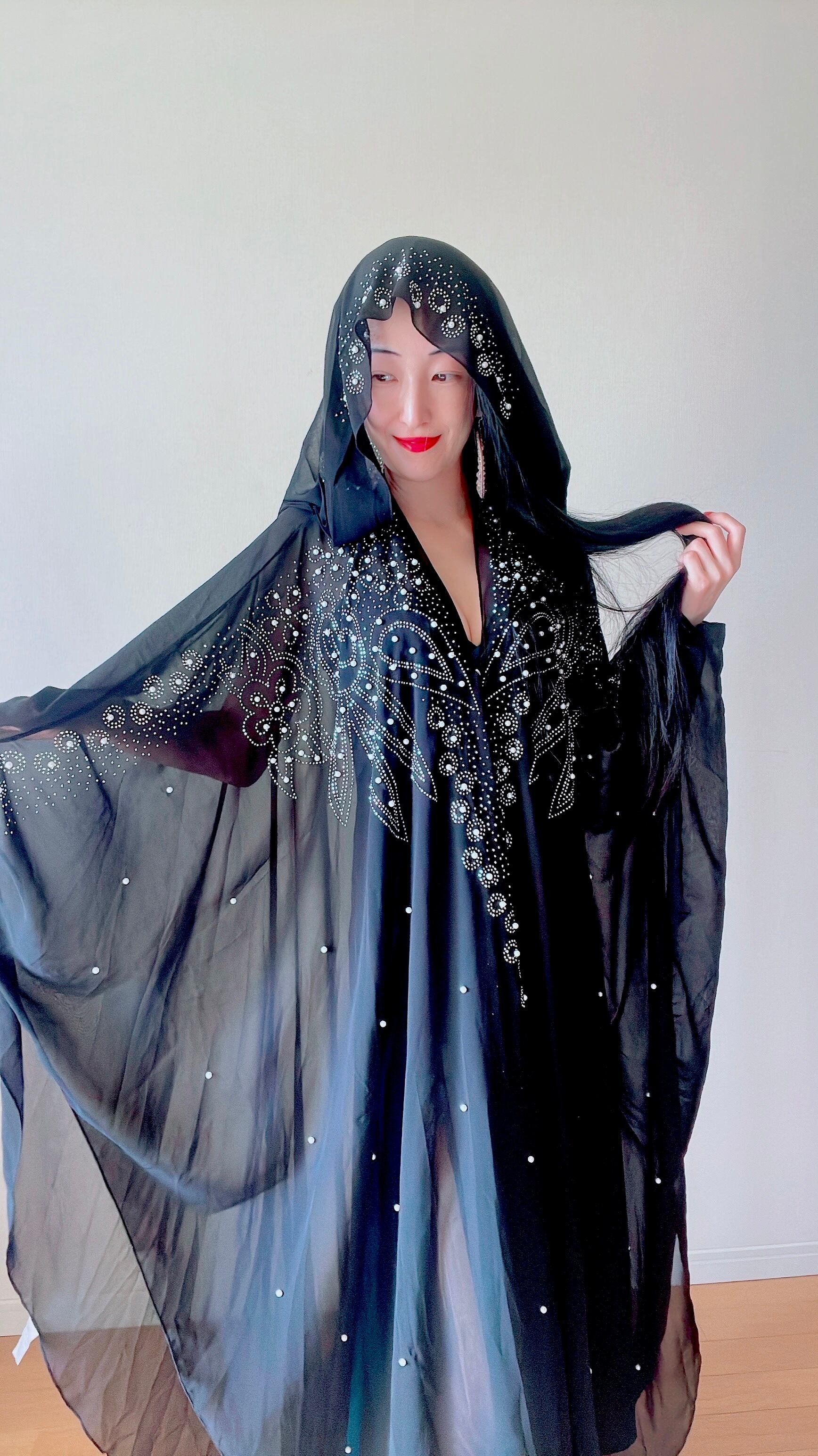 ベリーダンスの幕開けに欠かせないこの一着は、踊りの前に肌を優美に隠し、神秘的な雰囲気をまとわせるアイテム。