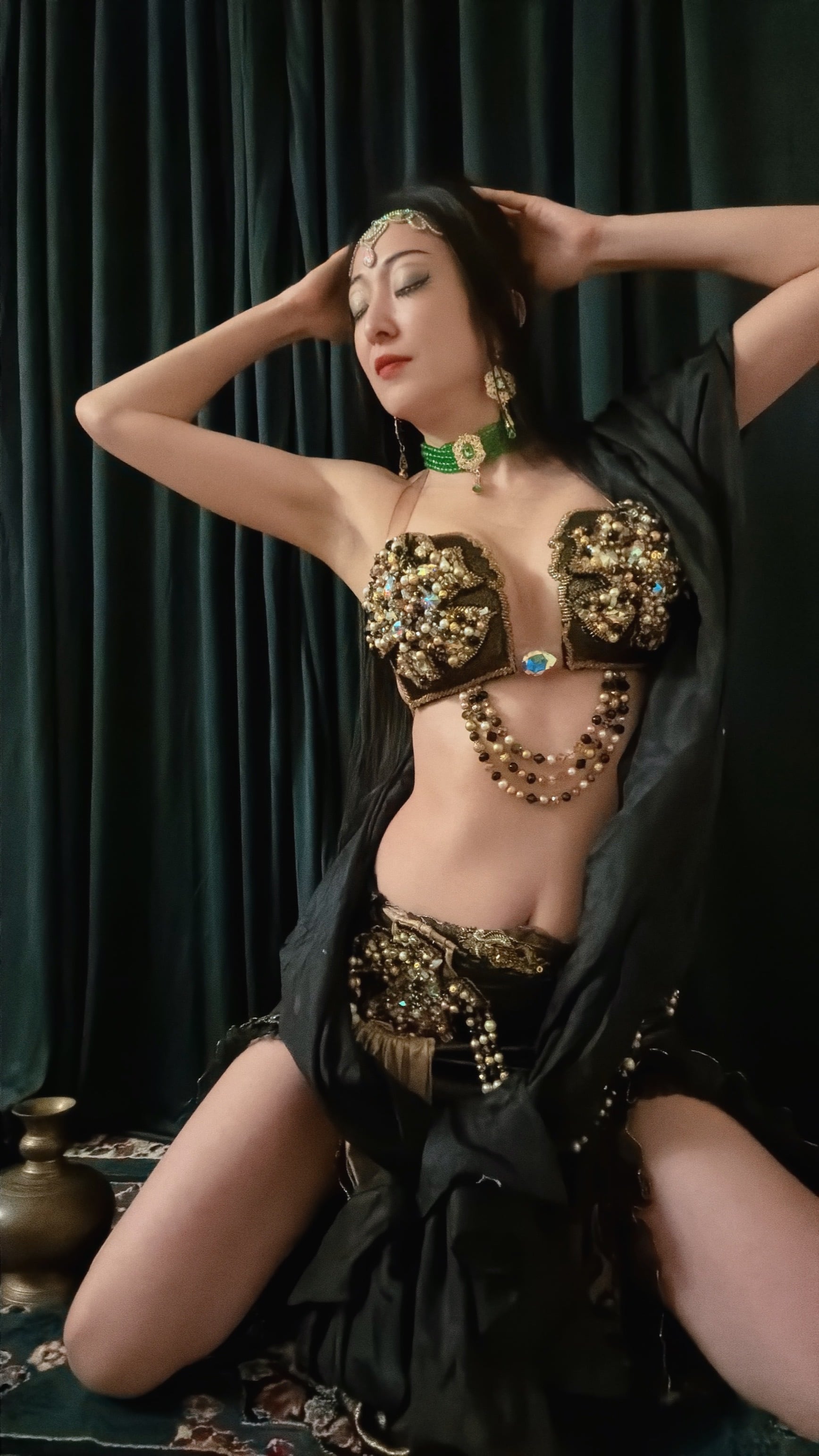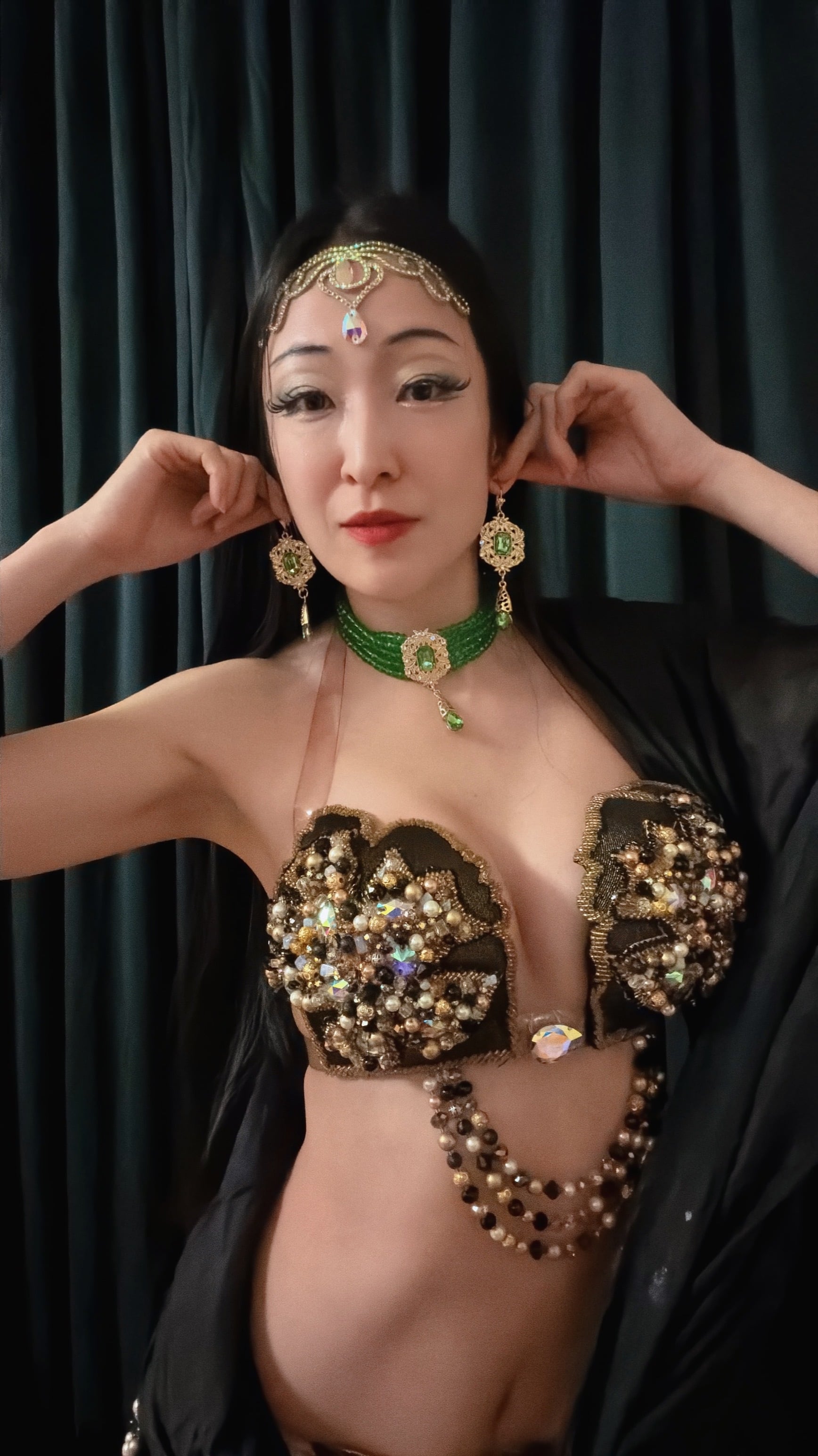 ひとたび踊れば、肌の上で贅沢な輝きが舞い、観る者を遥か異国の宮廷物語へと誘うでしょう。