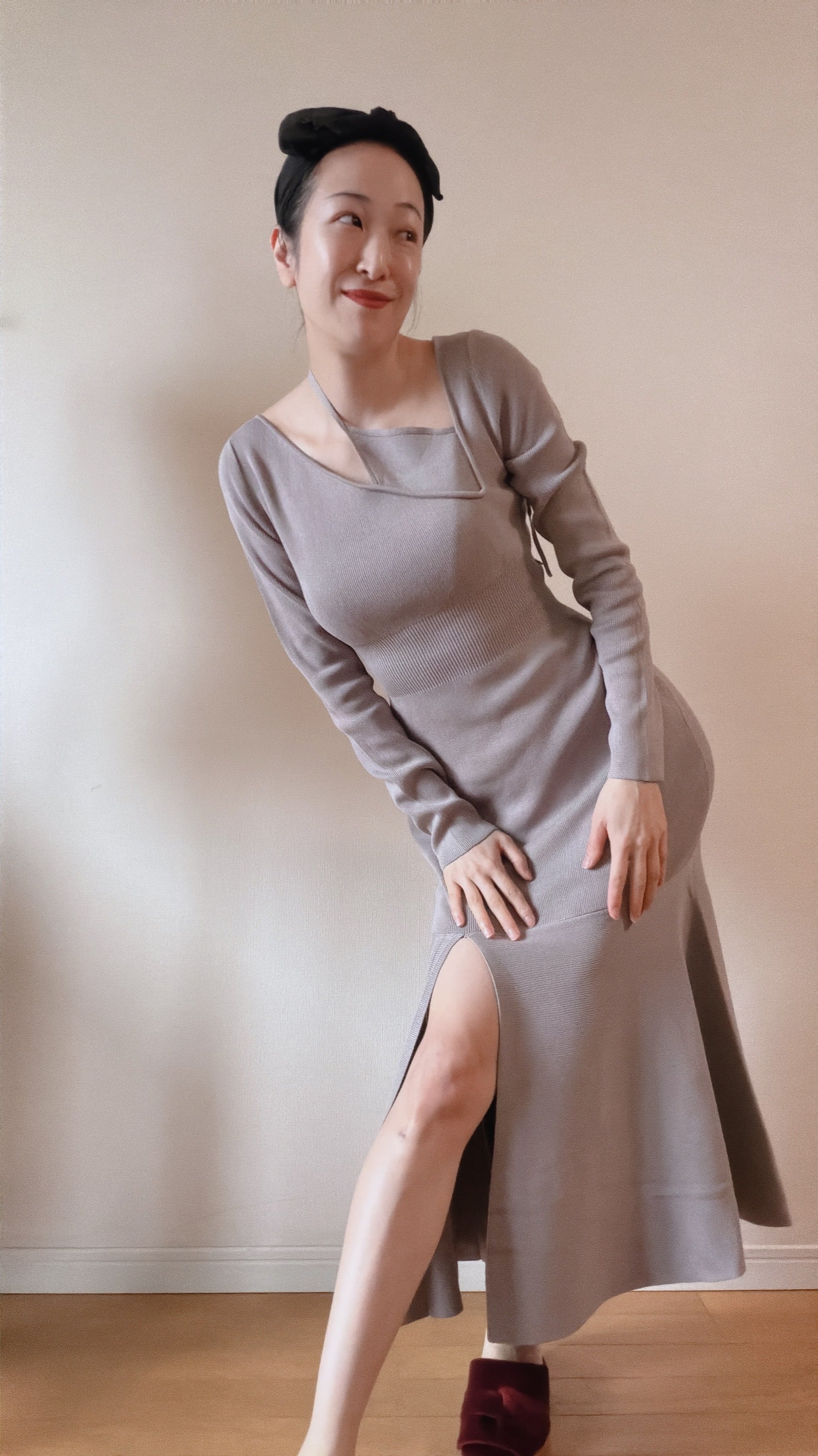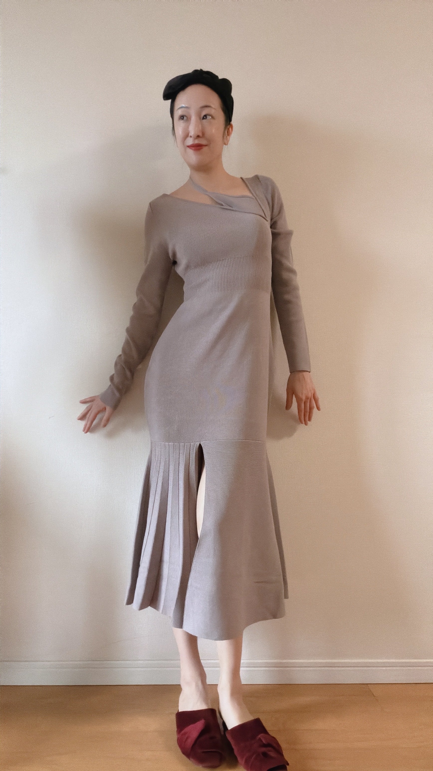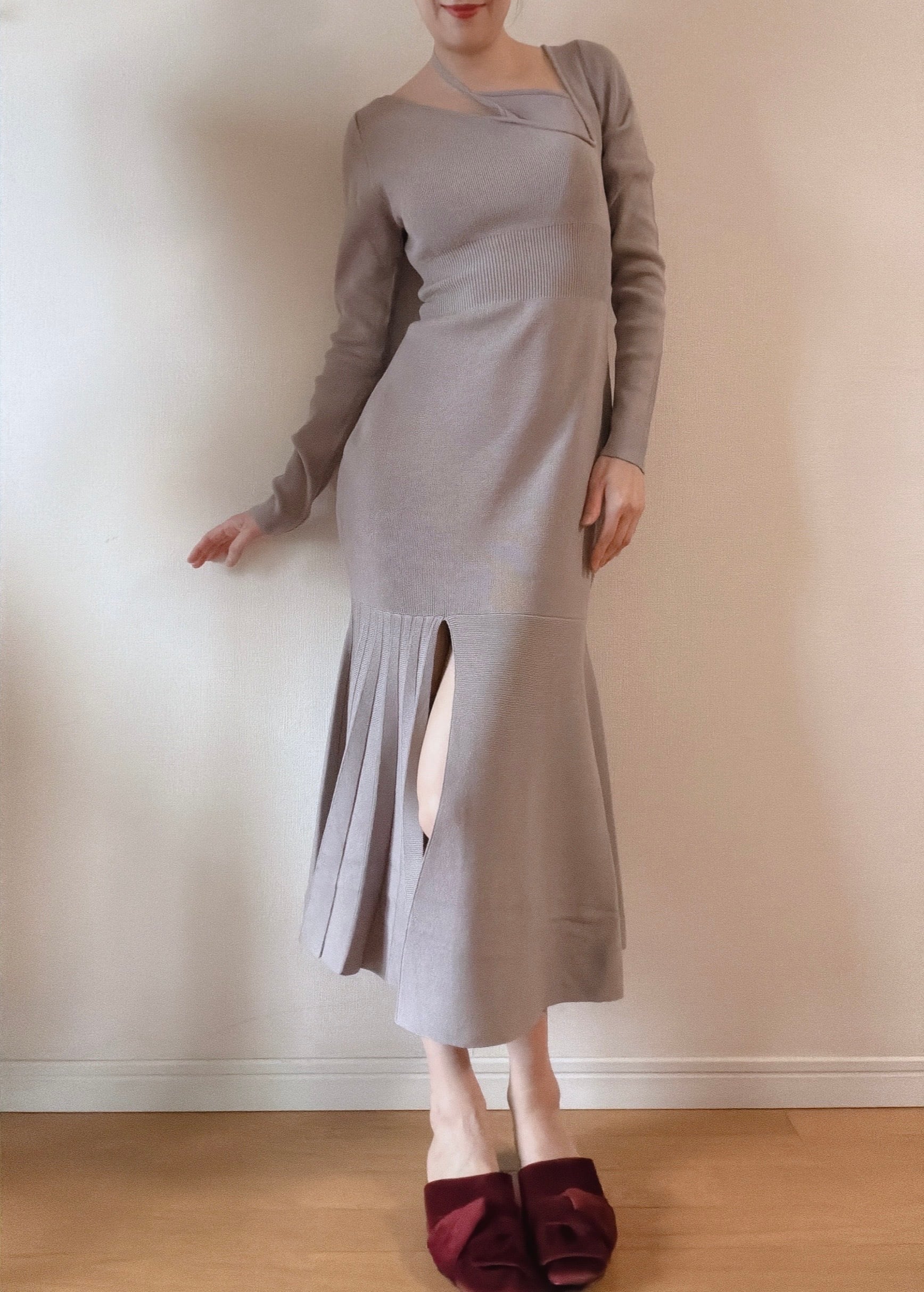 【ブランドアウトレット】春素材マーメイドニットワンピ